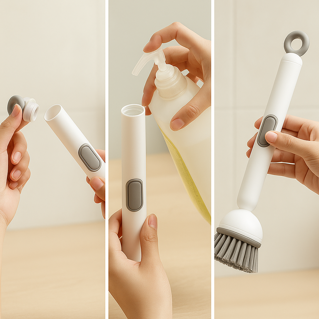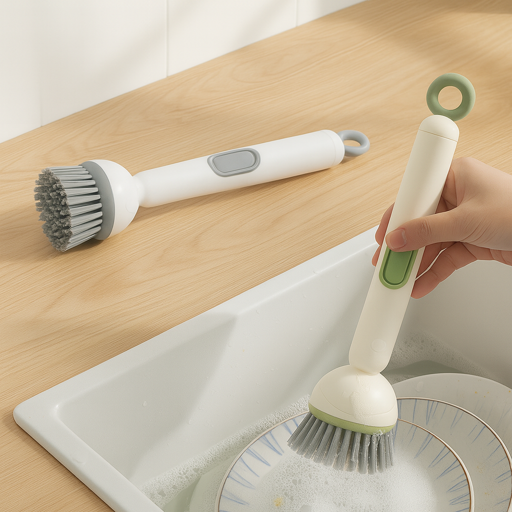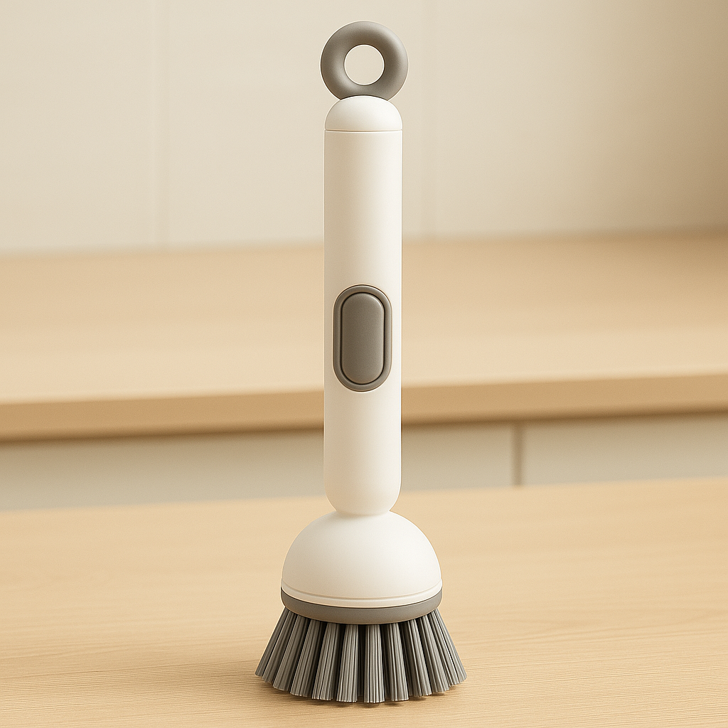 מברשת ניקוי מקצועית עם מיכל סבון מובנה לניקוי יעיל וקל למטבח שלכם.