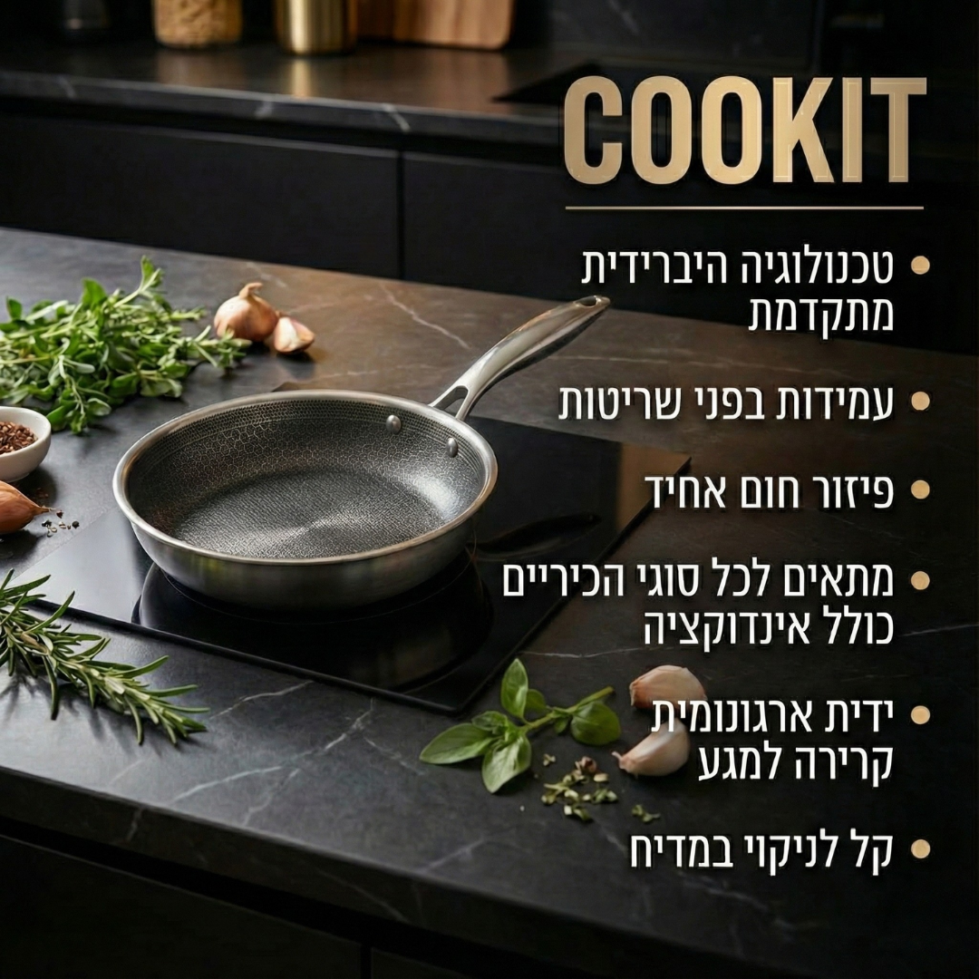 🍳 נון-סטיק חכם: האוכל מחליק מהמחבת, מאפשר בישול בריא במינימום שמן וניקוי בשניות.