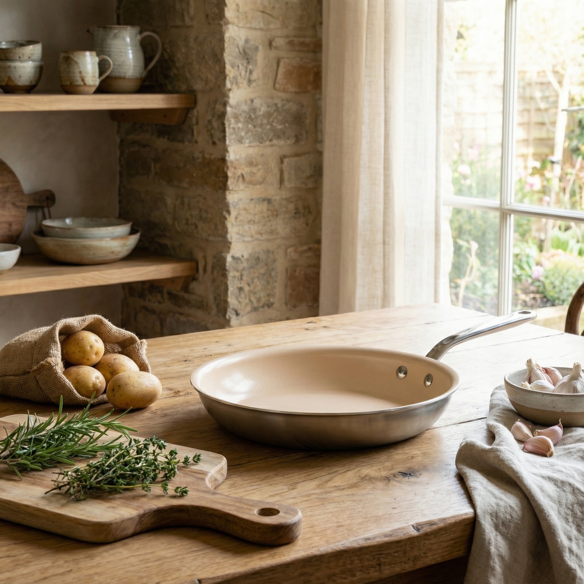 שכבה כפולה של ציפוי קרמי העשויה מחומרים טבעיים (סלעים, אבנים וגרניט) שמרוסקים לנוזל, ולרוב בתהליך הייצור אינם נפלטים חומרים רעילים לעומת מחבת טפלון נפוצה.